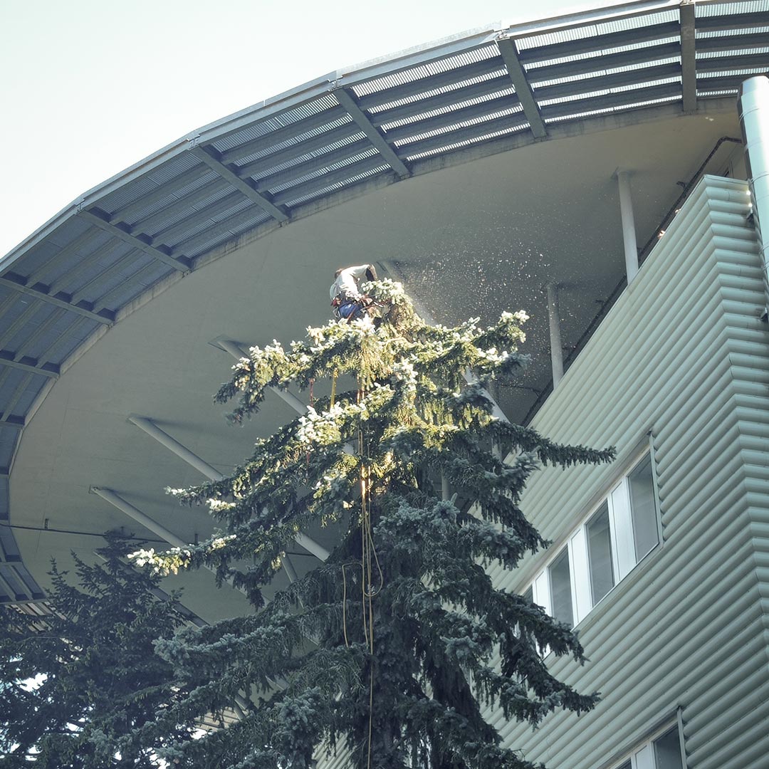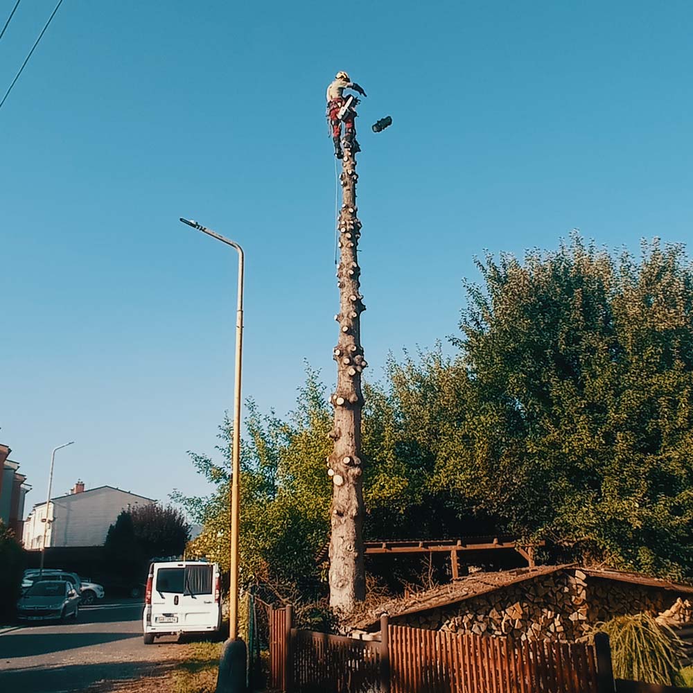 Provádíme rizikové kácení stromů pomocí stromolezeckých technik, vysokozdvižné plošiny nebo jeřábu s postupným rozebráním stromu a bezpečným spouštěním větví. Pokud to situace a okolnosti dovolí, provádíme směrové kácení stromu v celku, případně s přetažením